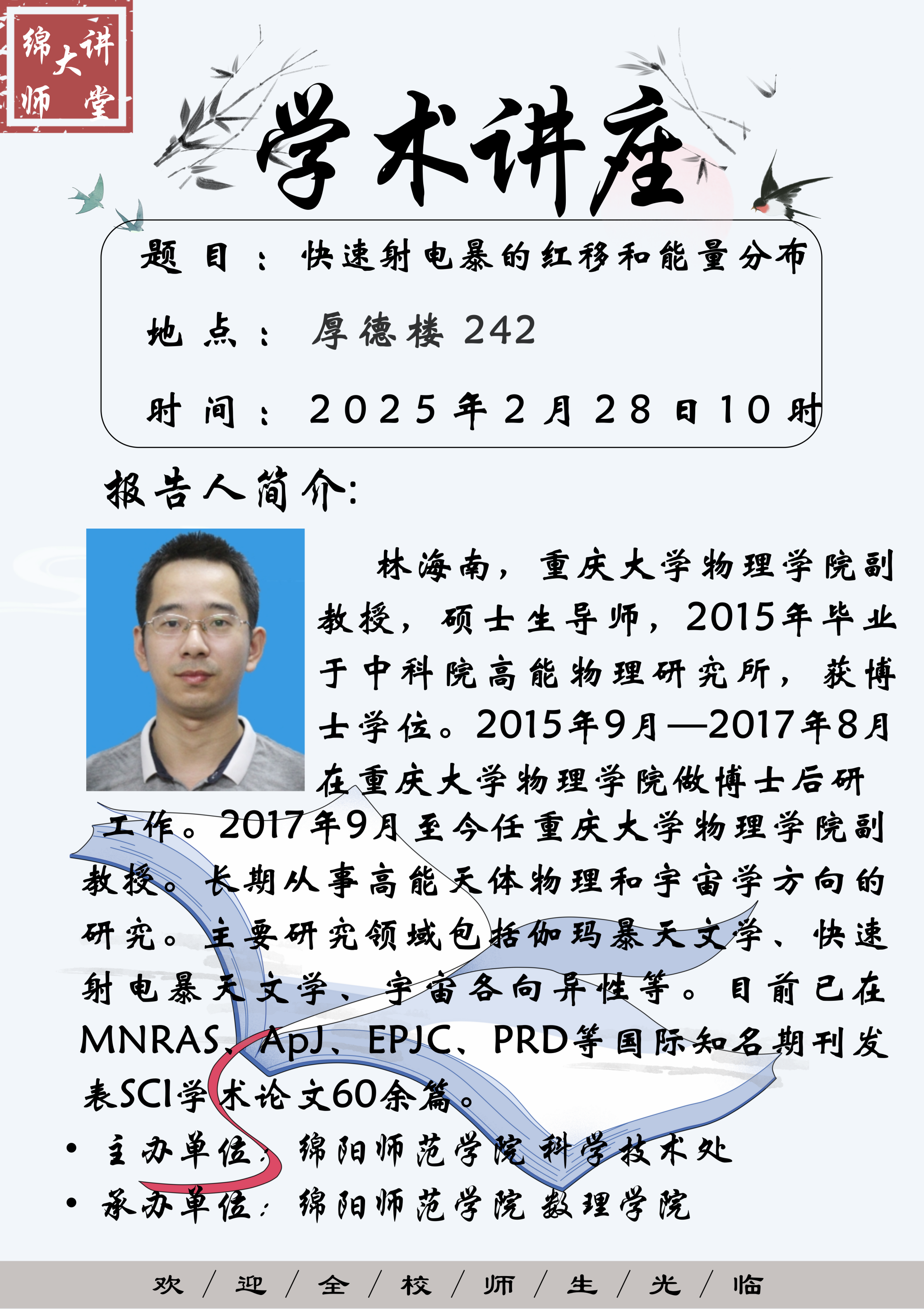 校外专家学术报告预告:快速射电暴的红移和能量分布